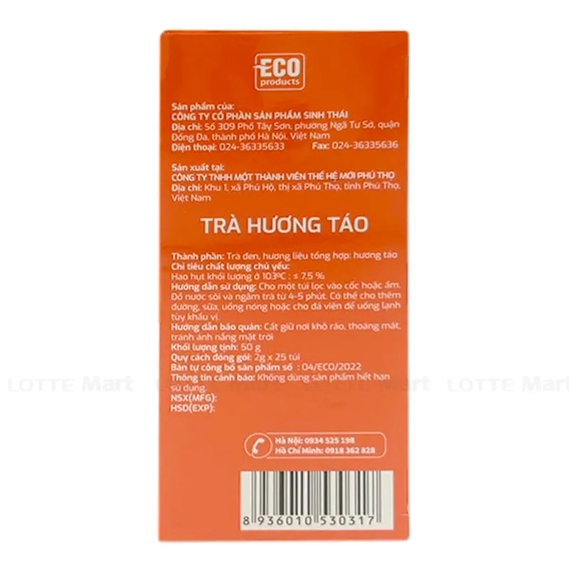 Sản phẩm đạt tiêu chuẩn Tiêu chuẩn An toàn thực phẩm HACCP, ISO 22000, an toàn cho người sử dụng. Thành phần: Trà đen, Hương liệu tổng hợp: Hương Táo.