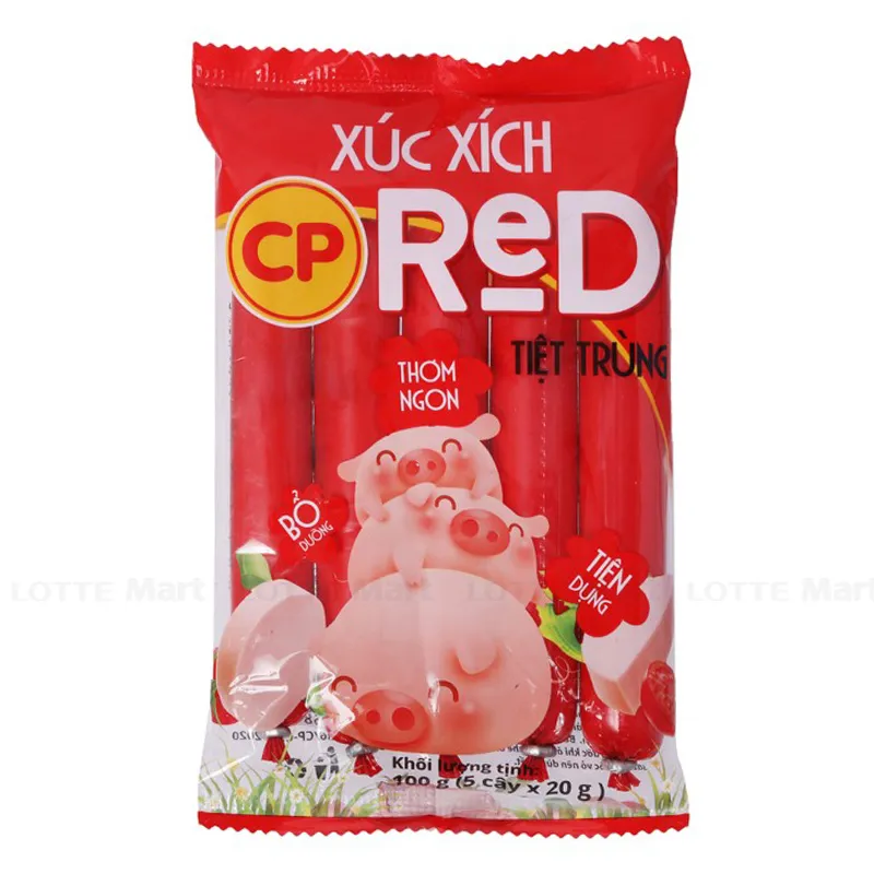 Xúc xích tiệt trùng Red cây 20g (5 cây) là sản phẩm xúc xích mùi vị truyền thống của CP vốn được nhiều trẻ em yêu thích và phụ huynh tin dùng suốt thời gian qua.
