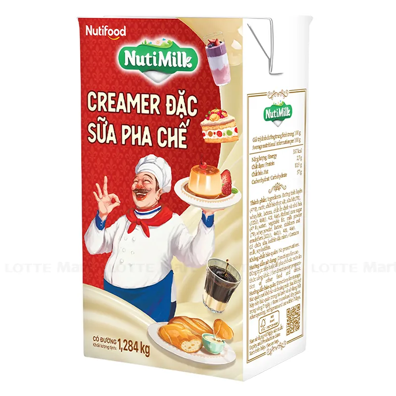 Creamer đặc có đường Nuti ngọt dịu vị béo kem sữa là “bí quyết” để pha ly cà phê sữa đậm đà sành điệu; là thành phần không thể thiếu cho ly sinh tố, hũ sữa chua thơm ngon, hay làm nên chiếc bánh flan sánh mịn, béo ngậy.