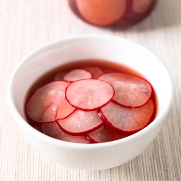 Củ Cải Đỏ Mỹ sở hữu lớp vỏ đỏ rực rỡ tương phản với phần ruột trắng tinh, giúp món ăn trở nên vô cùng bắt mắt.