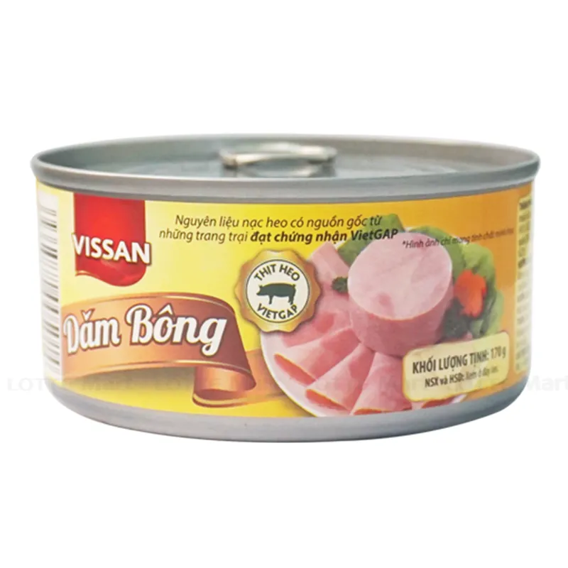 Thịt heo hộp thơm ngon, chất lượng. Thịt heo dăm bông Vissan hộp 170g thơm đậm vị heo cùng với gia vị sấy ngào ngạt.