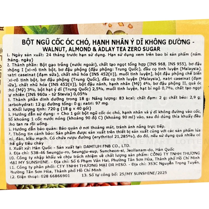 Bột Ngũ Cốc Óc Chó Hạnh Nhân Ý Dĩ Không Đường Damtuh Hộp 720G