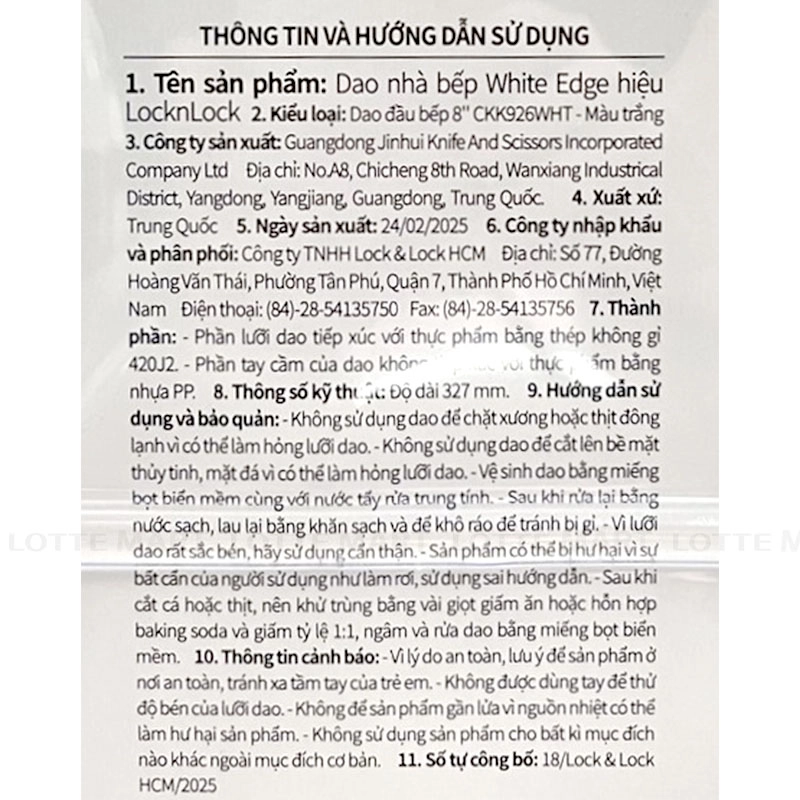 Dao Làm Bếp Lock&Lock CKK926WHT 32.7cm
