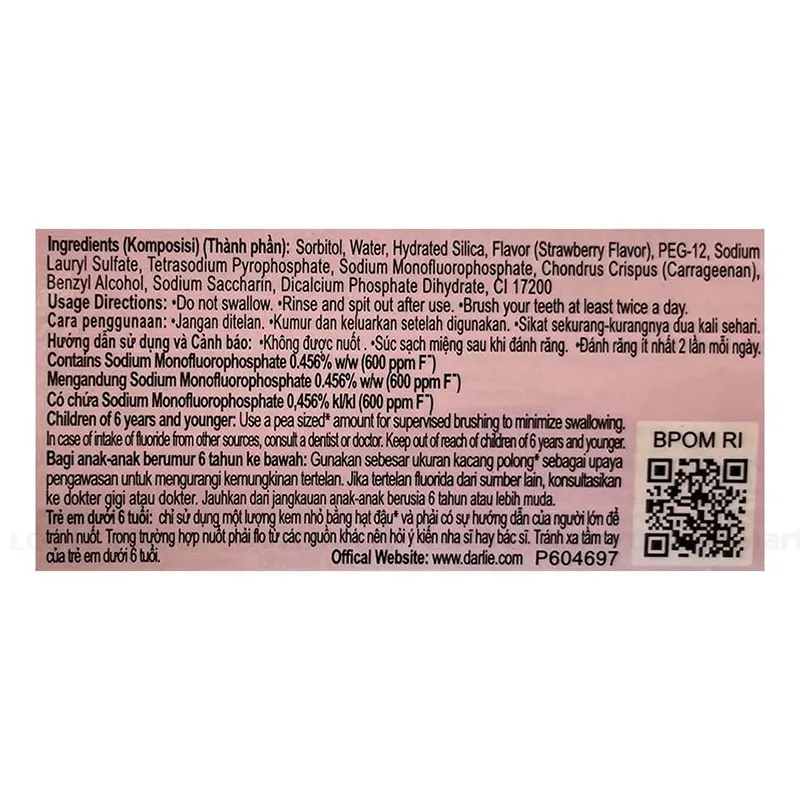 Kem Đánh Răng Darlie Trẻ Em Hương Dâu 40G có tác dụng chống sâu răng, ngăn ngừa viêm lợi. Hương dâu thơm ngọt sẽ tăng thêm sự thích thú cho bé.