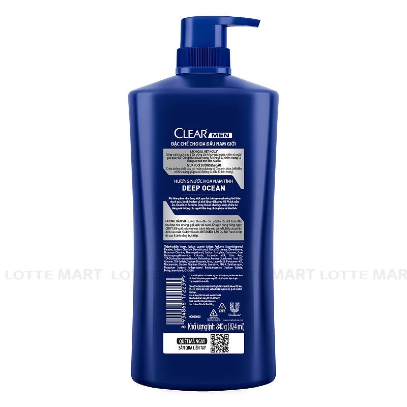 Dầu Gội Sạch Gàu Dành Cho Nam Clear Men Hương Gió Biển và Hổ Phách Chai 840G