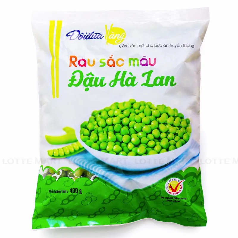 Đậu Hà Lan Đôi Đũa Vàng 400G được làm từ nguyên liệu 100% hạt đậu Hà Lan tươi ngon, tự nhiên không chất bảo quản.