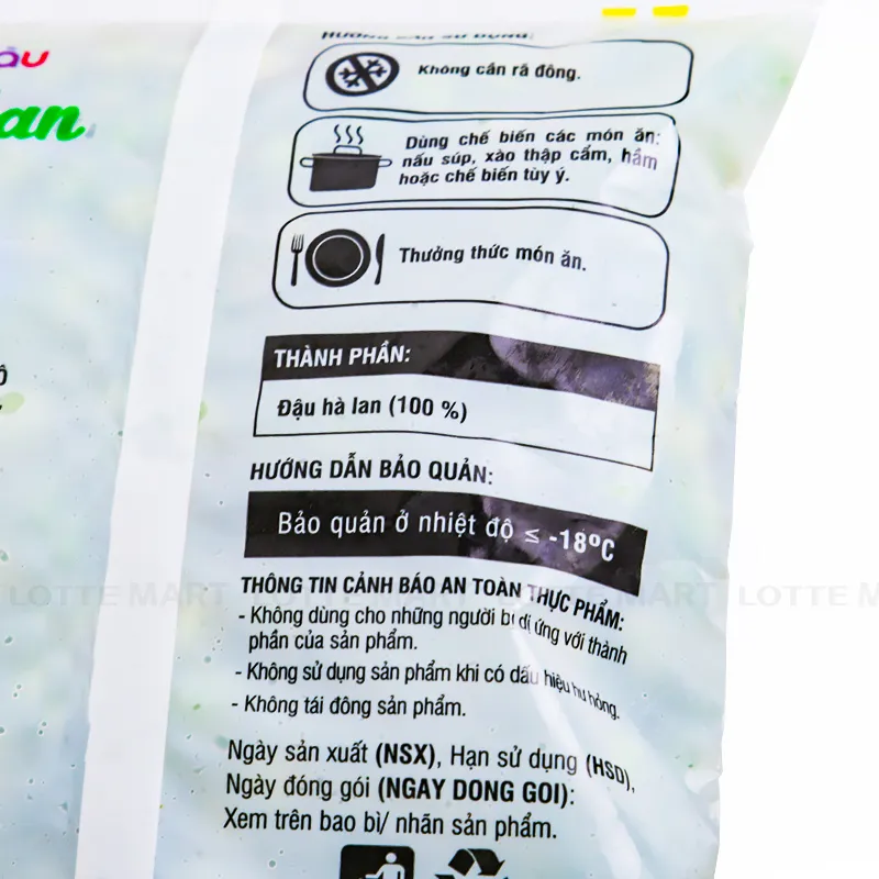 Sản phẩm Đậu Hà Lan đông lạnh Đôi Đũa Vàng sau khi rã đông có thể chế biến thành các món ăn tùy ý mang đến hương vị mới cho bữa ăn gia đình.