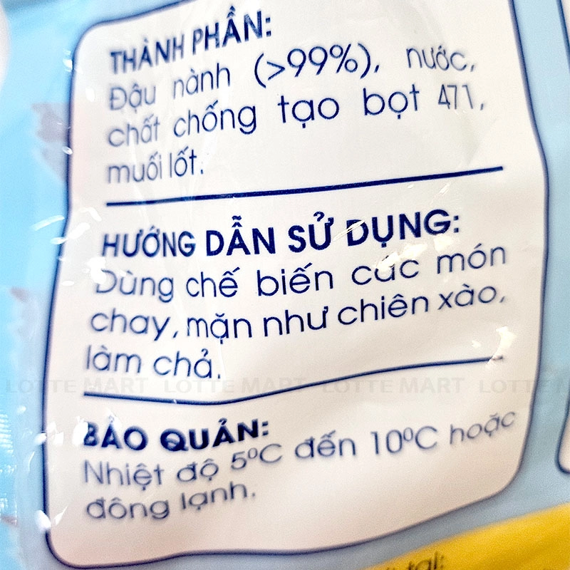 - Đậu nành, nước, chất chống tạo bọt 471, muối Iốt.