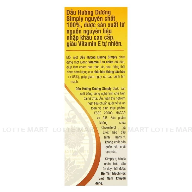 Dầu Hướng Dương Simply Nguyên chất được Hội Tim Mạch Học Việt Nam khuyên dùng.