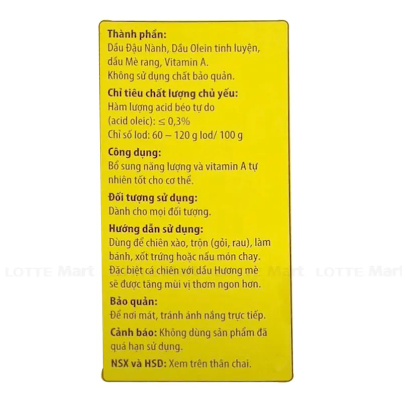 - Dầu Olein, dầu đậu nành, dầu hạt cải tinh luyện, dầu mè rang 1%, vitamin A.