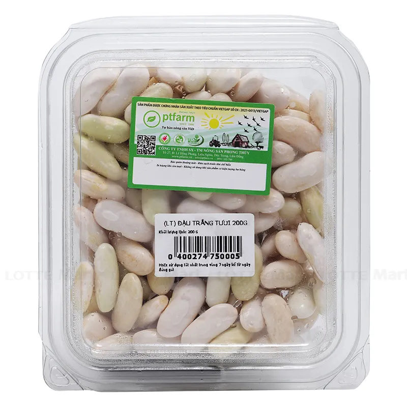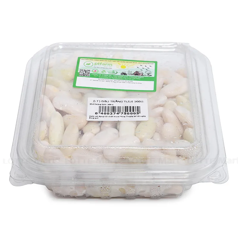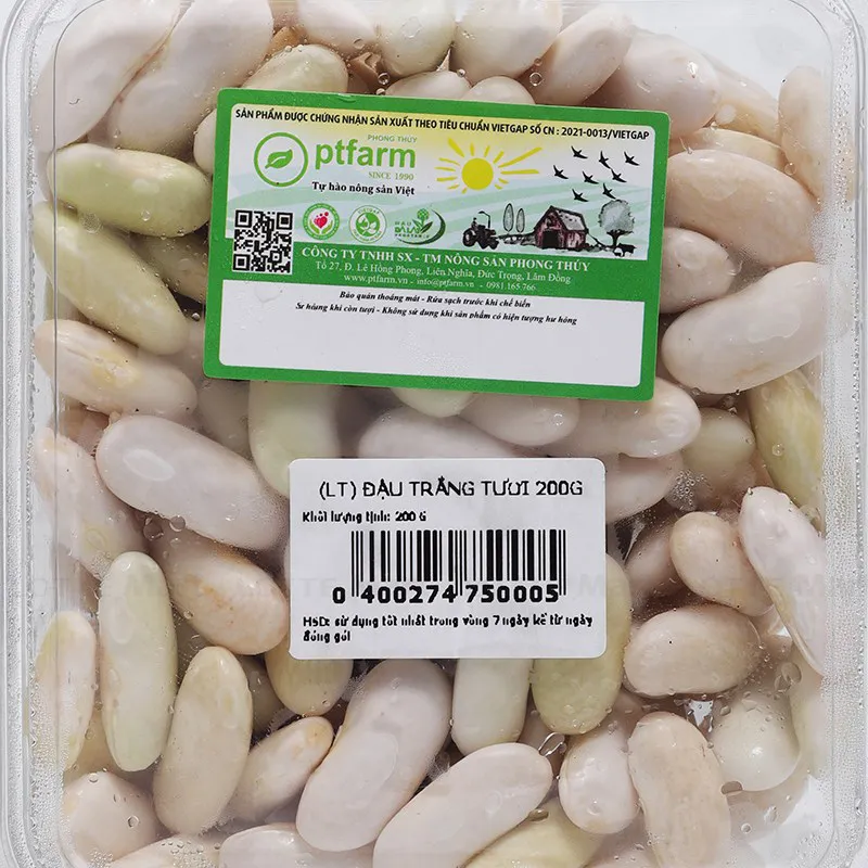 Là một trong những loại hạt được đánh giá chứa nhiều hàm lượng dinh dưỡng và chất xơ cao. Trong 100 gram đậu trắng tươi có chứa các thành phần chính bao gồm: + Vitamin A: 2,04mg; vitamin C 14mg; vitamin B, chất béo 0,4gr và protein khoảng 2,3gr, acid folic … + Các axit amin quan trọng mà cơ thể không thể tổng hợp được như: lysine, tryptophan, thiamin. + Các chất khoáng bao gồm: 320mg Natri; 260mg Kali, Sắt, Canxi, Photpho, Magie.Công dụng: Giảm cân, chống lão hóa, tốt cho tiêu hóa và tim mạch. Bảo quản Nơi khô ráo, thoáng mát