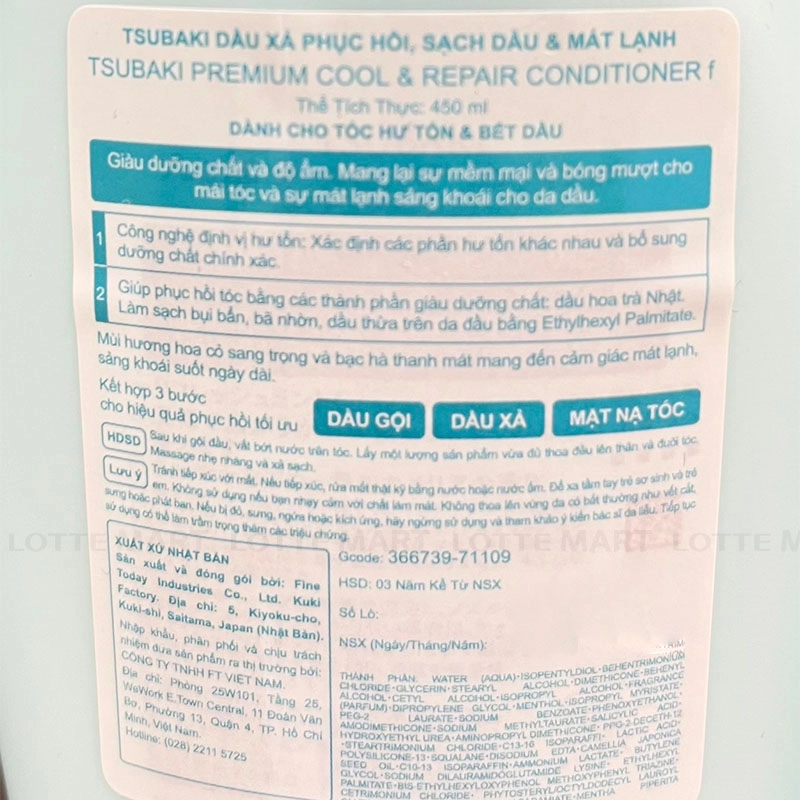 Dầu Xả Tsubaki Premium Cool Phục Hồi Tóc Chai 450ml
