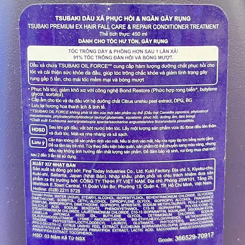 Dầu Xả Tsubaki Premium Ex Hairfall Care Ngăn Gãy Rụng Chai 450ml
