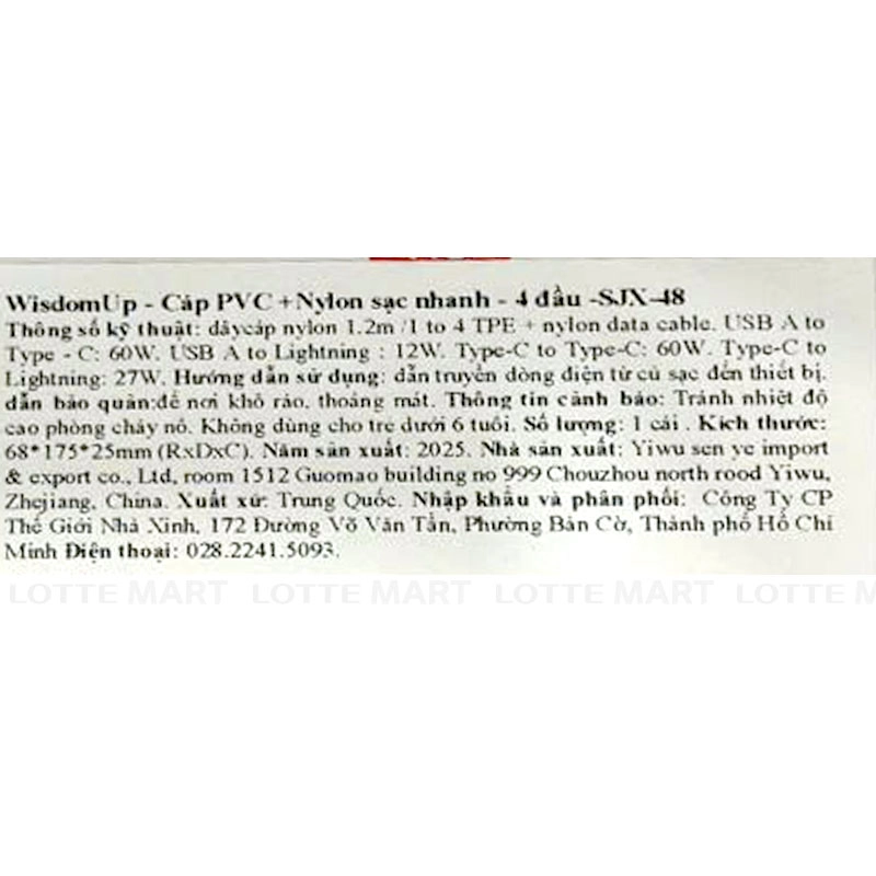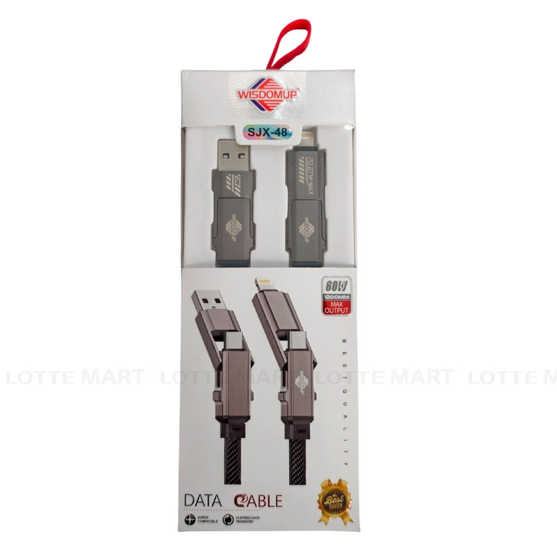 - Cáp PVC Và Nylon Sạc Nhanh 4 Đầu WisdomUp SJX-48 là giải pháp đa năng, cho phép sử dụng linh hoạt với nhiều thiết bị nhờ các chuẩn kết nối USB-A, Type-C và Lightning.