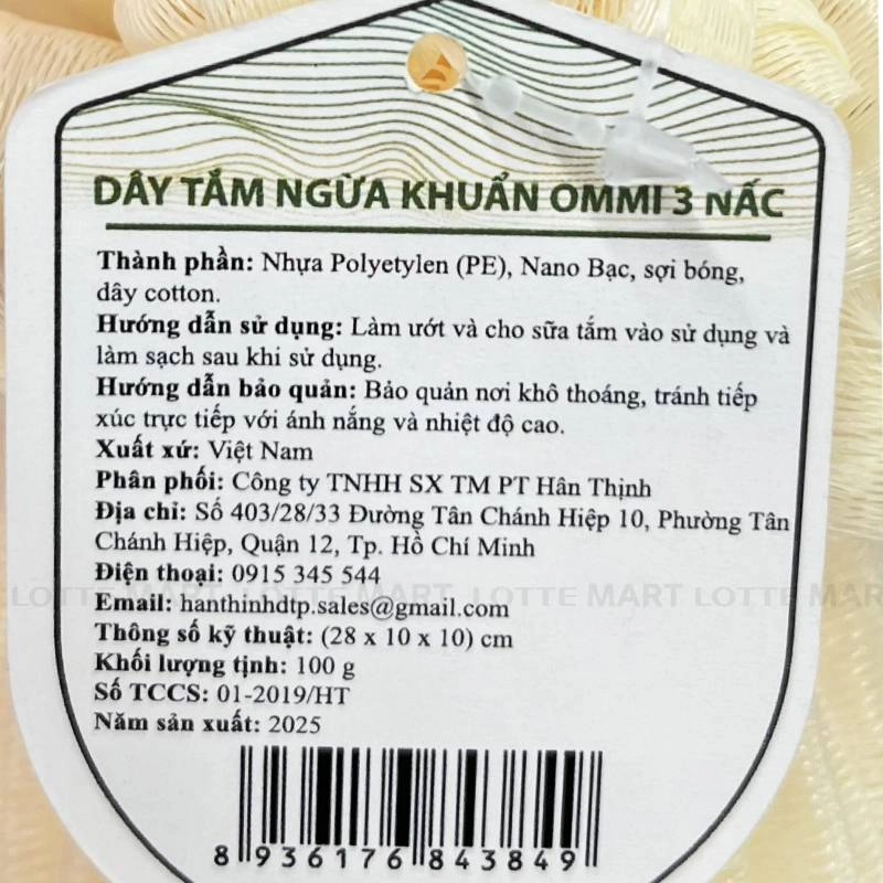- Dây Tắm Ommi Ngừa Khuẩn 3 Nấc được làm từ chất liệu nhựa PE an toàn, kết hợp với Nano bạc lần đầu được sử dụng để ngăn ngừa vi khuẩn tích tụ.