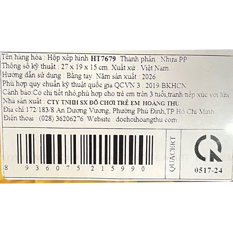 - Hộp Xếp Hình Hoàng Thu HT7679 là đồ chơi xếp hình gồm nhiều khối xếp hình bằng nhựa với màu sắc đa dạng, kích thước vừa tay, giúp trẻ dễ cầm nắm và lắp ghép trong quá trình chơi.