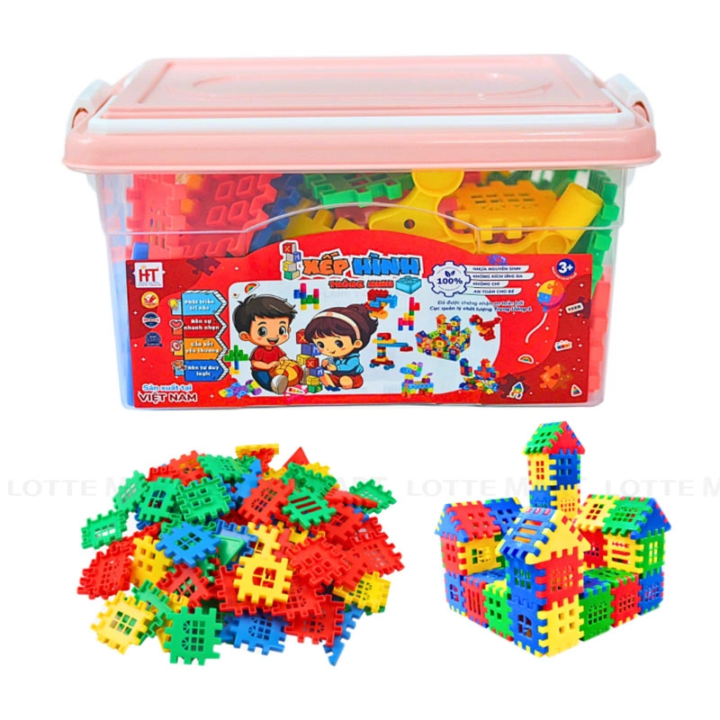 - Các khối xếp hình có màu sắc tươi sáng, hỗ trợ trẻ làm quen và phân biệt màu sắc trong quá trình lắp ghép. Việc chơi xếp hình giúp trẻ rèn luyện khả năng quan sát, kỹ năng phối hợp tay và mắt, đồng thời làm quen với tư duy không gian ở mức cơ bản thông qua hoạt động sắp xếp và xây dựng mô hình.