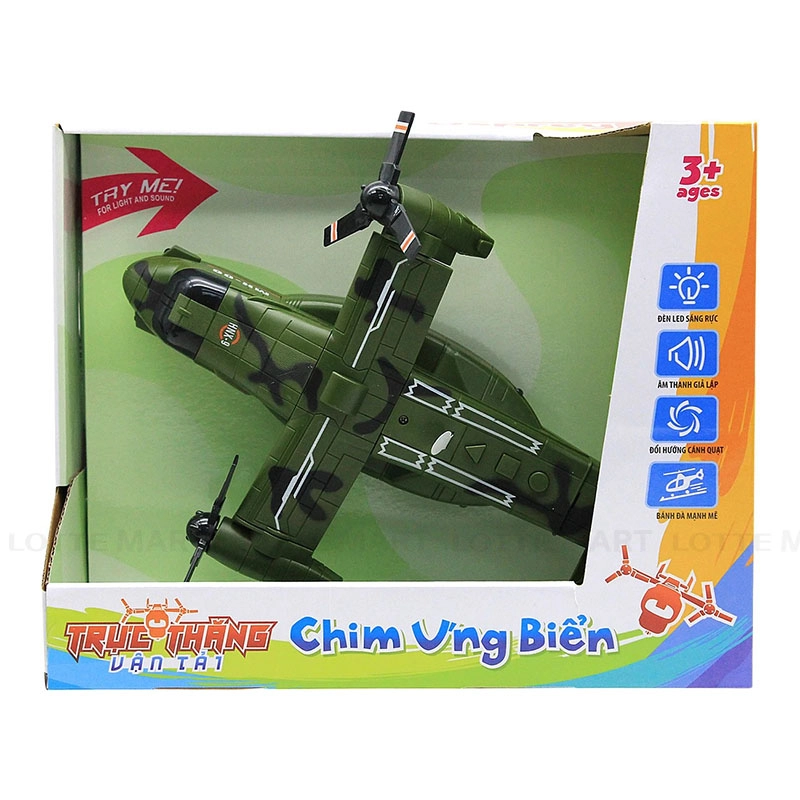 - Đồ Chơi Mô Hình Trực Thăng Vận Tải Chim Ưng Biển Winka DK81325 được thiết kế theo phong cách quân sự mạnh mẽ, mô phỏng trực thăng vận tải hiện đại với họa tiết ngụy trang ấn tượng. Sản phẩm tích hợp đèn LED sáng và âm thanh giả lập sống động, giúp tăng trải nghiệm khi chơi.