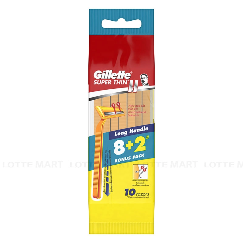 Dao Cạo Râu Gillette Super Thin II Gói 8+2 được thiết kế với đầu lưỡi tự động điều chỉnh theo đường cong khuôn mặt giúp việc cao râu trở nên an toàn.
