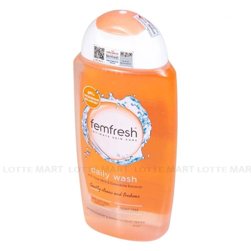 - Dung Dịch Vệ Sinh Phụ Nữ Femfresh Hàng Ngày là sản phẩm vệ sinh vùng kín với công thức chứa chiết xuất thành phần tự nhiên như cúc la mã, lô hội, dầu dừa và tinh dầu thơm, bổ sung chiết xuất chanh vàng và Glycerin, giúp làm sạch, kháng khuẩn, khử mùi vùng kín một cách nhẹ nhàng, tạo hương thơm mát suốt cả ngày.