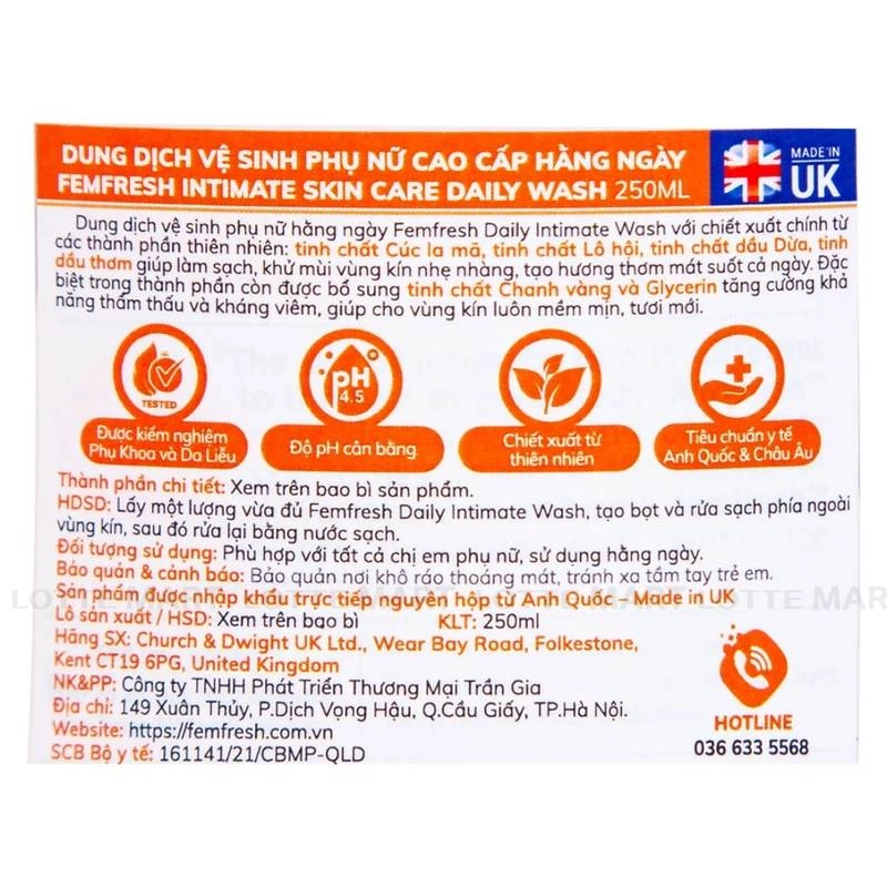 - Sản phẩm đã hoàn thành kiểm tra da liễu và phụ khoa không gây dị ứng và không chứa thành phần xà phòng gây kích ứng.