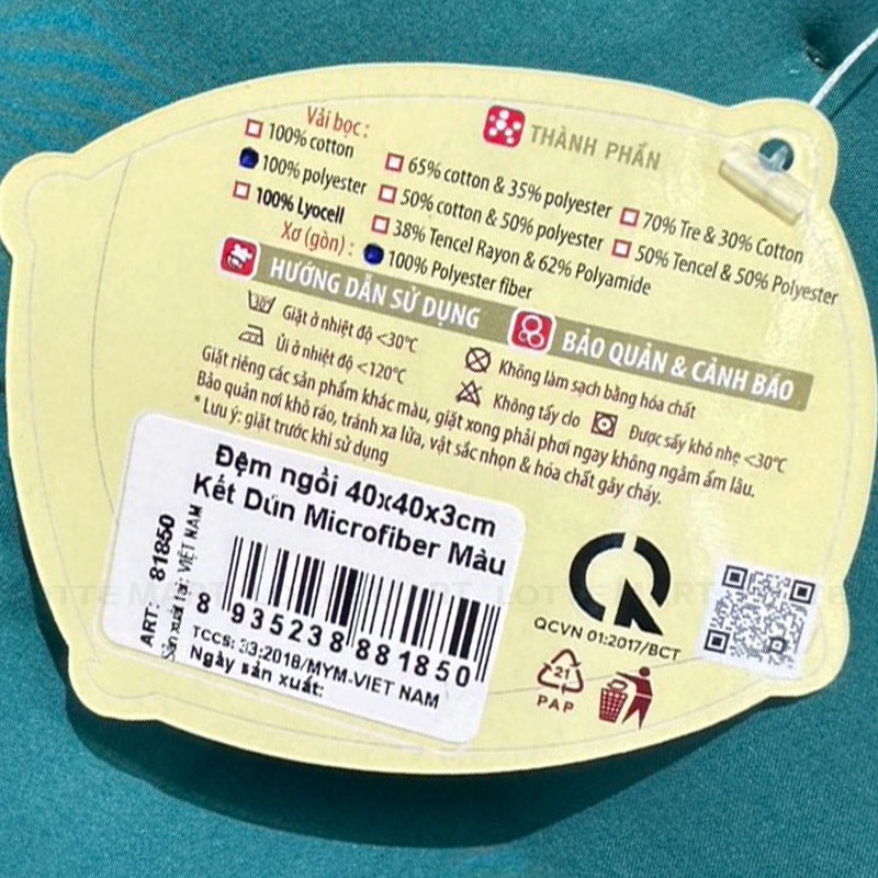 - Đệm Ngồi Kết Dún Microfiber Màu Mym là lựa chọn lý tưởng giúp tăng sự êm ái và thoải mái khi ngồi trong thời gian dài. Với thiết kế tối giản, màu sắc trung tính và chất liệu bền bỉ, sản phẩm phù hợp với nhiều không gian như phòng khách, phòng làm việc, quán cà phê hay mang theo khi di chuyển.