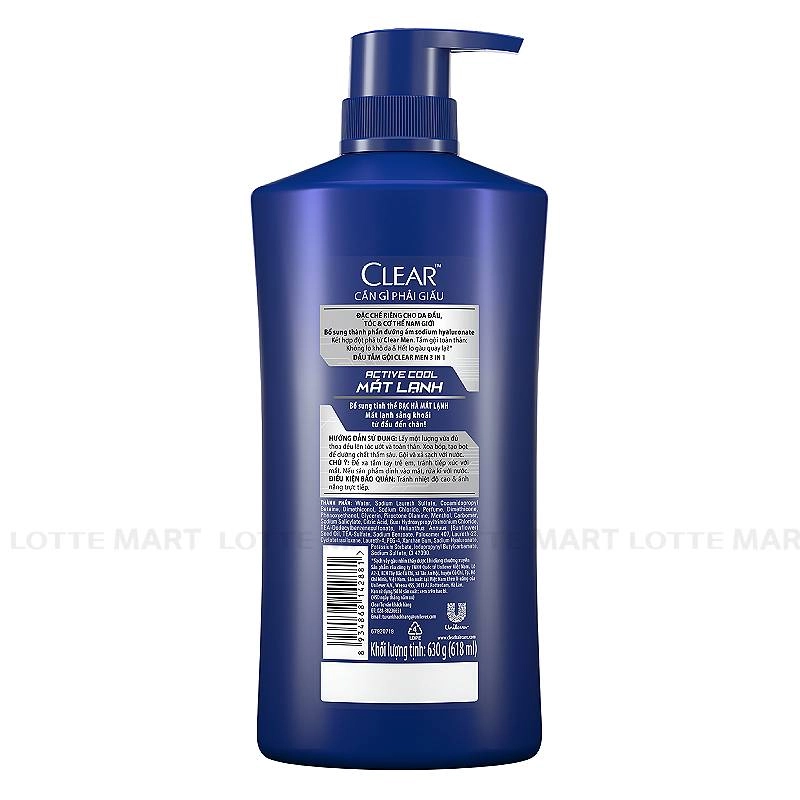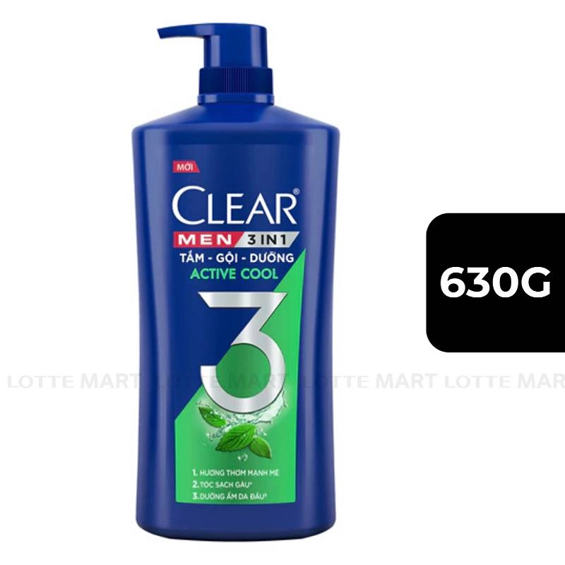 Dầu Gội Dành Cho Nam Clear Men 3 In 1 Tắm, Gội, Dưỡng Active Cool Chai 630G