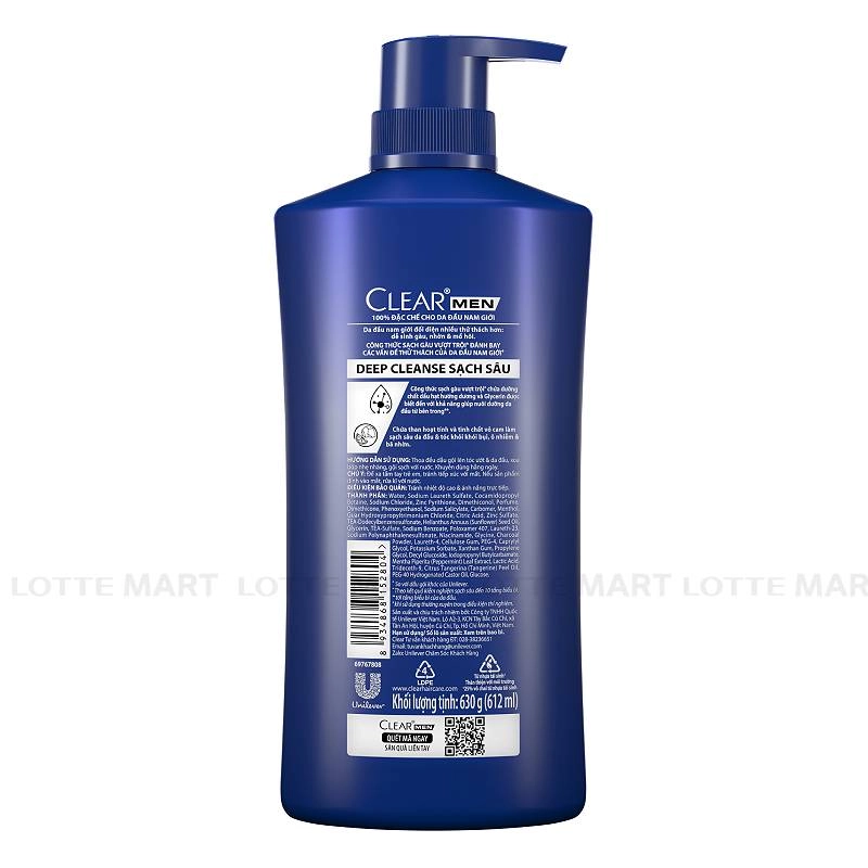 - Dầu Gội Sạch Gàu Dành Cho Nam Clear Men Deep Cleanse Sạch Sâu là sản phẩm dầu gội được nghiên cứu dành riêng cho nam giới với công nghệ sạch gàu tiên tiến giúp đánh bay gàu ngứa, vi khuẩn, nuôi dưỡng da đầu, kết thúc nỗi lo về gàu.