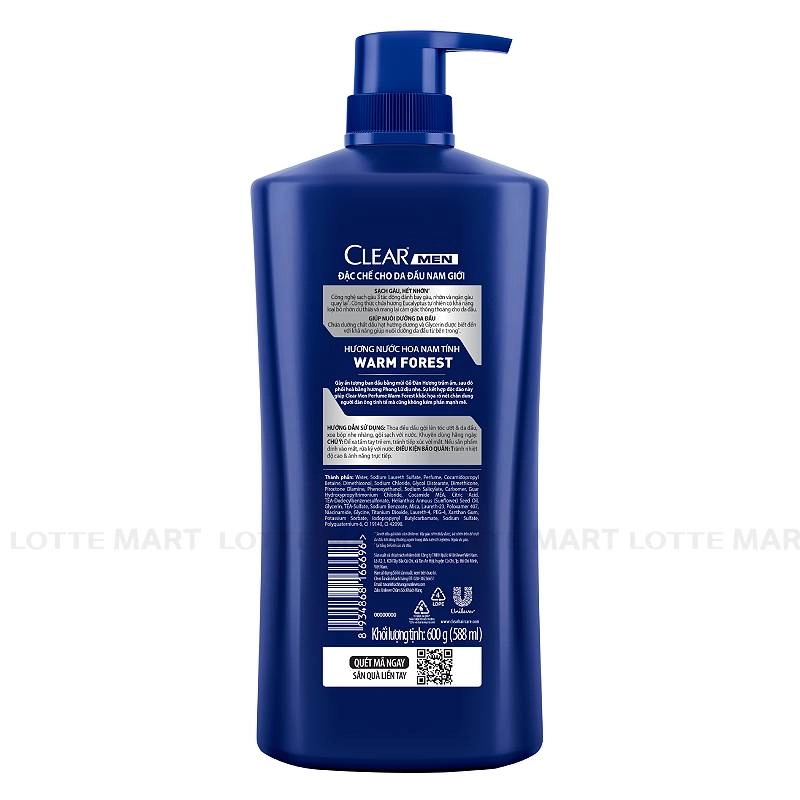 Dầu Gội Sạch Gàu Dành Cho Nam Clear Men Hương Phong Lữ và Gỗ Đàn Hương Chai 600G