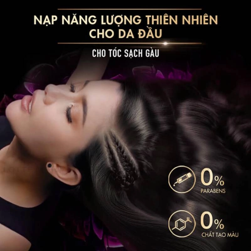 - Ngoài ra, sản phẩm còn chứa lá trà, Cỏ Mực, và hoa Kim Ngân có tác động trực tiếp lên da đầu, thẩm thấu và nuôi dưỡng từ sâu bên trong giúp tóc chắc khỏe, đồng thời được bổ sung thêm tinh chất Bồ Kết sạch dầu nhờn, suôn mượt.