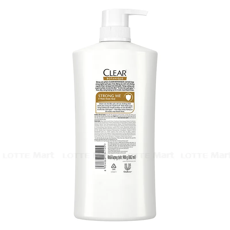 Dầu Gội CLEAR Botanique 9 Thảo Dược Quý Sạch Gàu Chai 900G