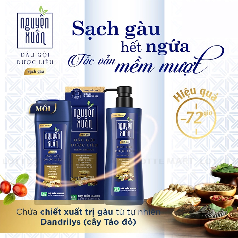 - Dầu Gội Dược Liệu Nguyên Xuân Sạch Gàu là sản phẩm dầu gội đến từ thương hiệu Nguyên Xuân. Sản phẩm được nghiên cứu dựa trên kinh nghiệm dân gian, kết hợp với những nghiên cứu mới của khoa học hiện đại.