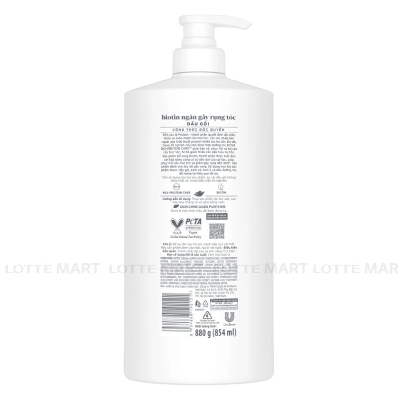 - Dầu Gội Dove Biotin Ngăn Gãy Rụng Tóc với thành phần Bio-Serum kết tinh từ dầu hạt hướng dương và chiết xuất lá trà xanh, thấm đều và nuôi dưỡng từng sợi tóc từ bên trong, giúp tóc mềm mượt dễ chải, giảm xơ rối ngay từ khi tóc ướt, ngăn gãy rụng vượt trội.