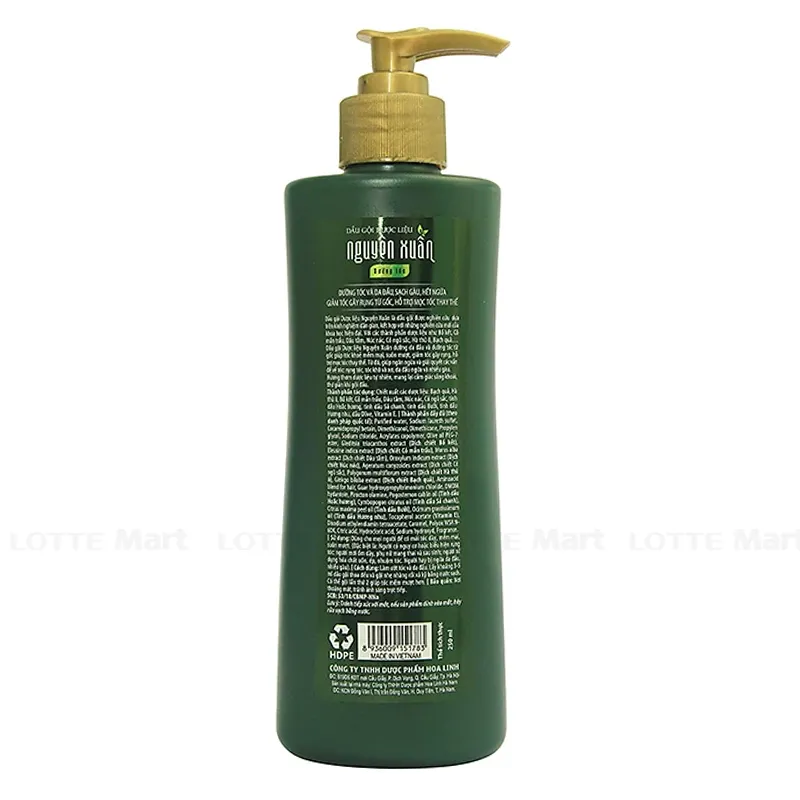 - Dầu gội Dược liệu Nguyên Xuân xanh còn được bổ sung thêm các thành phần: Vitamin E, dầu olive, …. giúp tóc mềm mại, suôn mượt. Nguyên Xuân thích hợp cho người có mái tóc khô, xơ chẻ ngọn, tóc bị hư tổn do hóa chất uốn, ép, nhuộm…