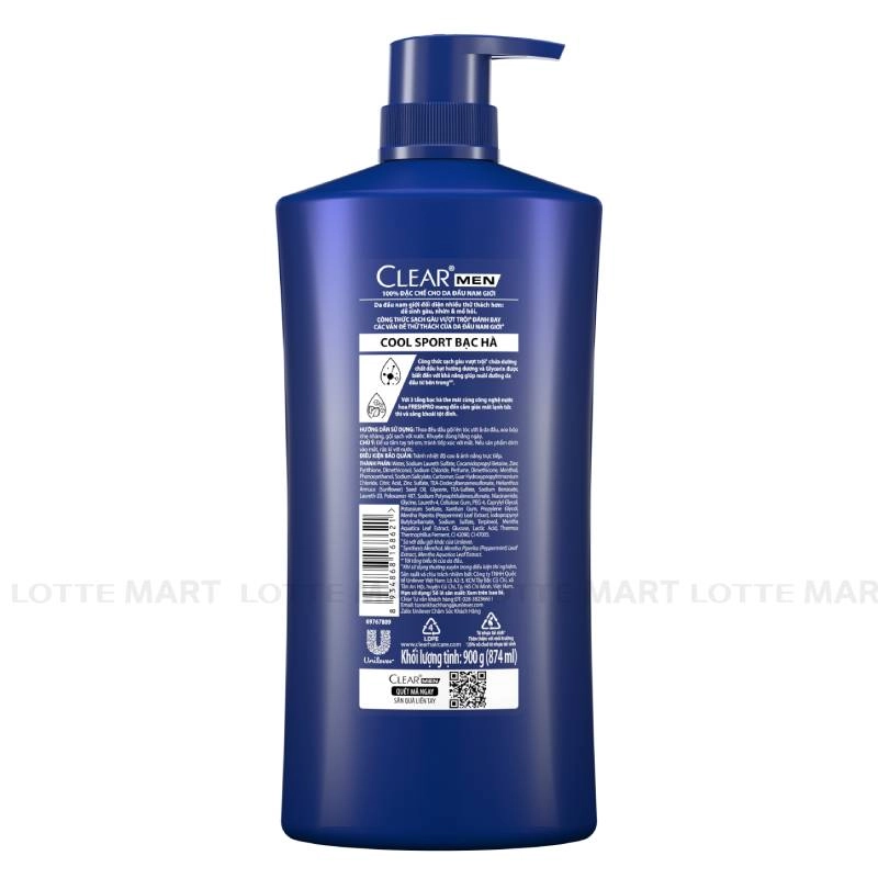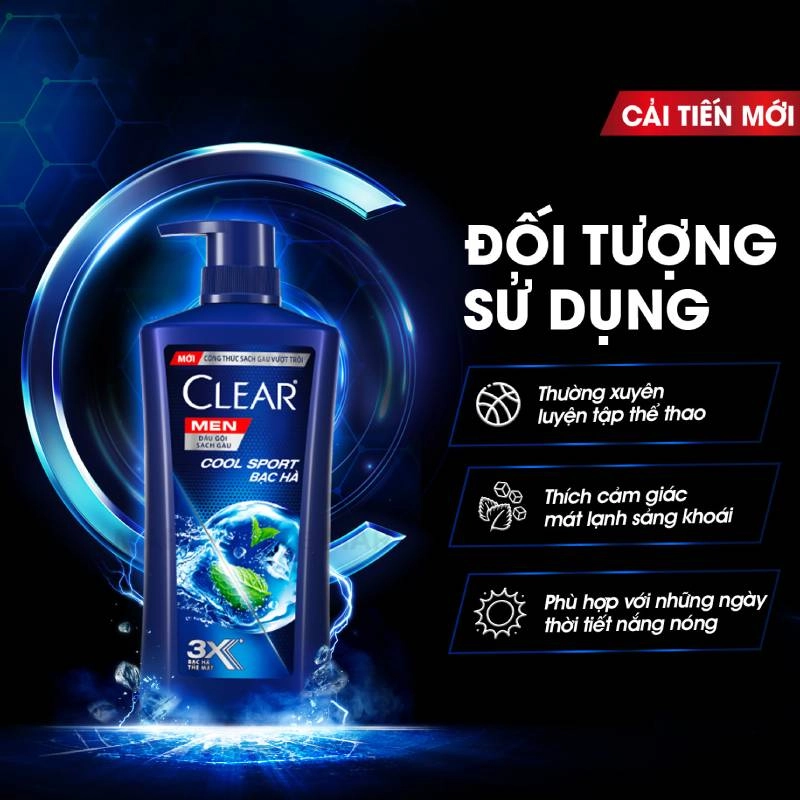 - Dầu Gội Sạch Gàu Dành Cho Nam Clear Men Cool Sport Bạc Hà là sản phẩm dầu gội được đặc chế cho da đầu nam giới, với công nghệ sạch gàu tiên tiến giúp đánh bay các vấn đề thử thách của da đầu nam giới.