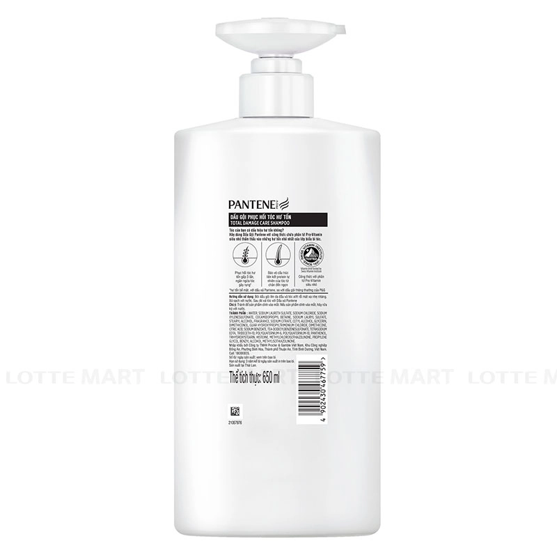 Dầu gội Pantene chăm sóc tóc hư tổn có công thức chuyên biệt dành cho tóc yếu, nhẹ nhàng làm sạch bụi bẩn, chất nhờn trên tóc và da đầu.