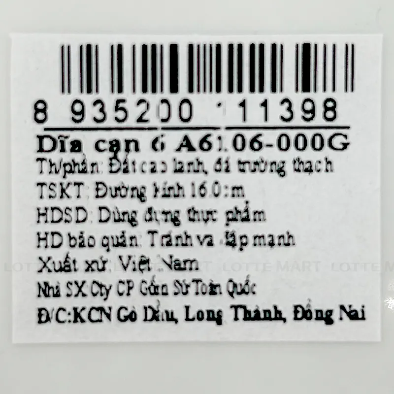 - Đĩa Cạn Viền Vàng 6 A6106-000G tiện lợi với lòng dĩa cạn có sức chứa nhiều. Sản phẩm có màu sắc nhẹ nhàng, tinh tế, mang tính thẩm mỹ cao. Sản phẩm có bề mặt bóng, hạn chế bám màu. Ngoài ra viền chén còn được mạ một lớp vàng bóng vừa sang trọng vừa làm điểm nhấn cho chén.