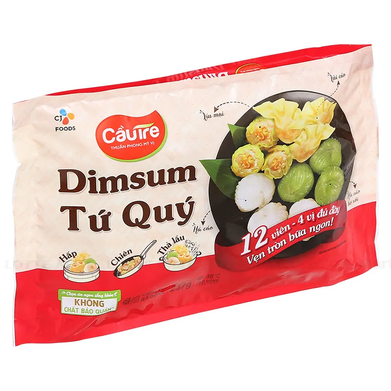 2. Đóng gói tiện lợi: Mỗi gói Dimsum Tứ Quý Cầu Tre chứa 12 viên bánh, bao gồm 3 viên cho mỗi loại. Sản phẩm này lý tưởng cho bữa ăn của 2 người, đảm bảo sự đa dạng và trọn vẹn trong trải nghiệm ẩm thực.