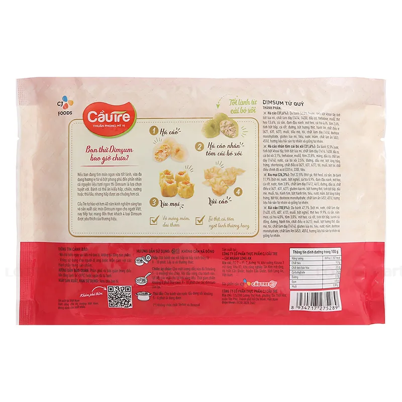Cầu Tre tự hào với hơn 40 năm kinh nghiệm sáng tạo và sản xuất các món Dimsum ngon cho người Việt, Dimsum Tứ Quý Cầu Tre mang đến cho bạn 4 món dimsum nổi tiếng trong một gói sản phẩm tiện lợi. Đây là sự kết hợp hoàn hảo giữa hương vị truyền thống và sáng tạo hiện đại, đáp ứng nhu cầu của những thực khách sành ăn và bận rộn.