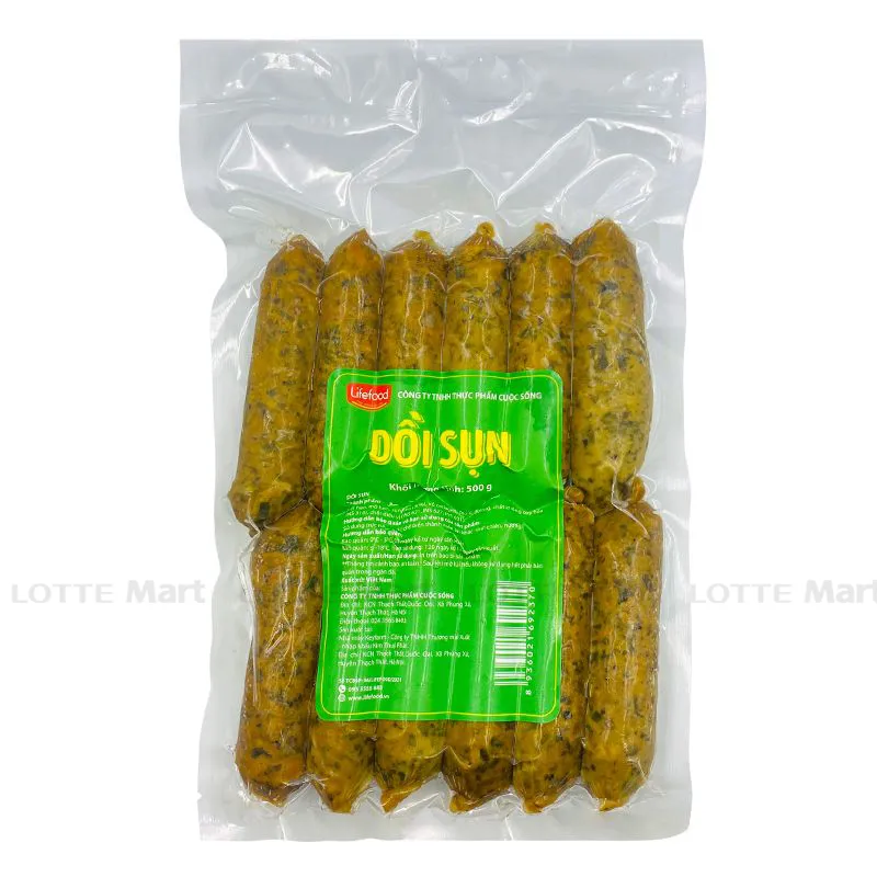 Dồi sụn Lifefood được làm từ những nguyên liệu chọn lọc, tươi ngon từ thịt heo xay, mỡ heo, sườn sụn heo kết hợp với công thức gia vị đậm đà riêng, bao bọc bên ngoài lớp collagen đặc biệt của Lifefood và đưa vào quá trình xông khói chín tự nhiên đạt tiêu chuẩn. Lifefood sử dụng nguyên liệu nhập khẩu, với thịt heo từ các nước như Hà Lan, Đức, Nga, Ba Lan. Bảo quản: 0-4°C: 30 ngày , ≤18°C: 120 ngày. Xuất xứ: Việt Nam.