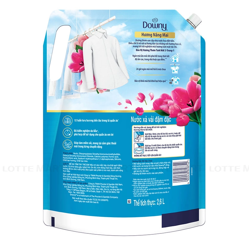 Hướng dẫn sử dụng: Rót Downy vào nước xả cuối cùng hoặc vào ngăn đựng nước làm mềm vải của máy giặt. Sau khi xả, phơi quần áo như thường lệ. Giặt tay 1/2 nắp cho 15 - 20 chiếc quần áo, giặt máy 1 nắp cho 1 thùng máy giặt (khoảng 52L) hoặc nửa nắp cho 1/2 thùng máy giặt (35L).