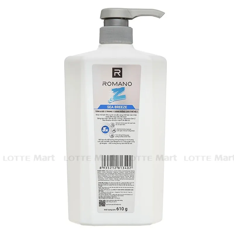 - Để thế hệ GenZ tự tin với lối sống bứt phá khi đối đầu mọi thử thách, không lo ngại mồ hôi và bụi bẩn, Romano mang đến dòng sản phẩm chăm sóc đầu tiên tại Việt Nam dành cho Dầu Tắm Gội 2 Trong 1 Romano Gen Z Hương Sea Breeze 610g.