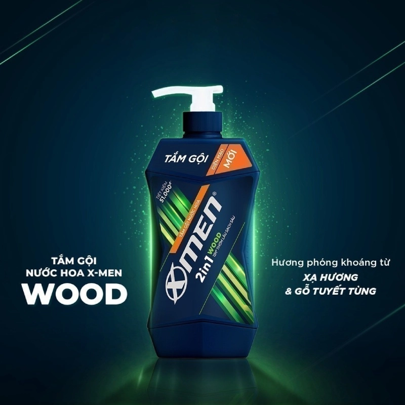 Sữa Tắm Gội 2in1 Xmen Wood với hương thơm nồng nàn, phóng khoáng từ xạ hương và gỗ tuyết tùng giúp làm sạch da, loại bỏ những tế bào chết và làm tóc sạch khỏe mang đến cảm giác đầy sức sống, mạnh mẽ, sôi động và bản lĩnh đàn ông đúng nghĩa.