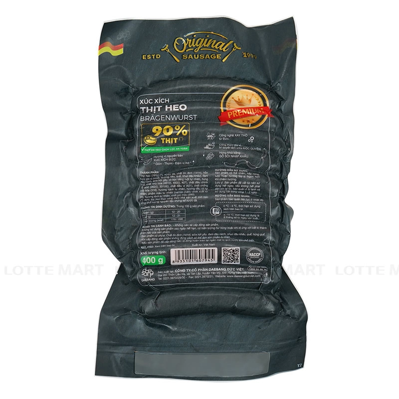 - Xúc Xích Heo Bragenwurst Đức Việt Gói 400G với thành phần được chọn lọc nghiêm ngặt, nhập khẩu từ châu Âu, Xúc xích Thịt heo Bragenwurst được phối trộn theo công thức nguyên bản Đức - cũng là xúc xích nổi tiếng nhất thế giới. Vỏ sản phẩm được làm tự ruột cừu tự nhiên, tạo cảm giác giòn dai khi thưởng thức.