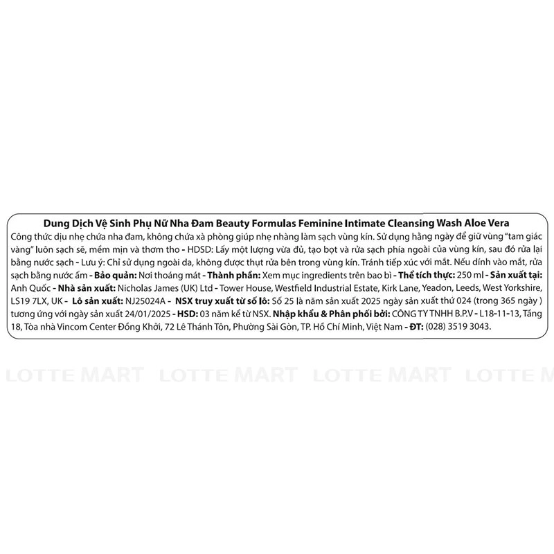 Dung Dịch Vệ Sinh Phụ Nữ Beauty Formulas Hương Nha Đam Êm Dịu 250ml
