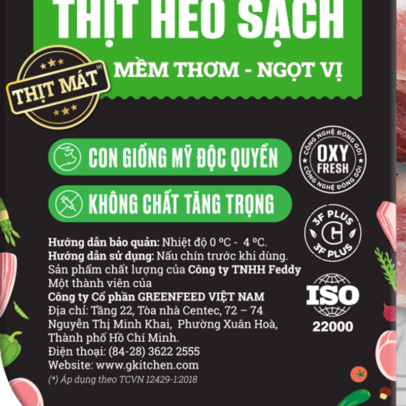 Sử dụng nguồn gốc con giống Mỹ, đạt chuẩn thịt sạch 3F Plus, không chất tăng trọng và đạt chứng nhận ISO 22000.