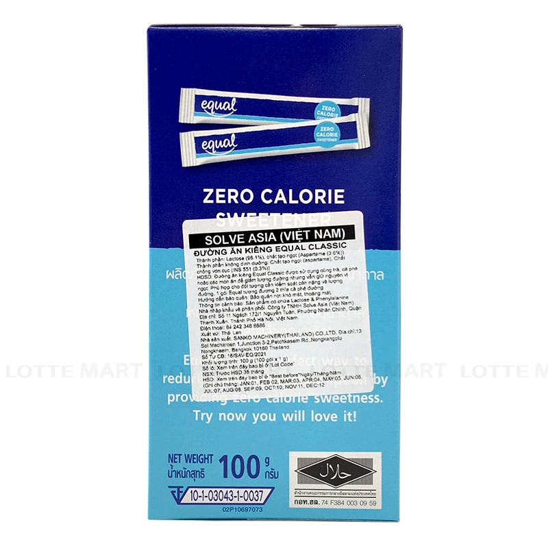 Ưu điểm nổi bật: Các gói đường ăn kiêng EQUAL CLASSIC không calo có hương vị tuyệt hảo và tan nhanh, không axit béo chuyển hóa (chất béo chuyển hóa), không calo.