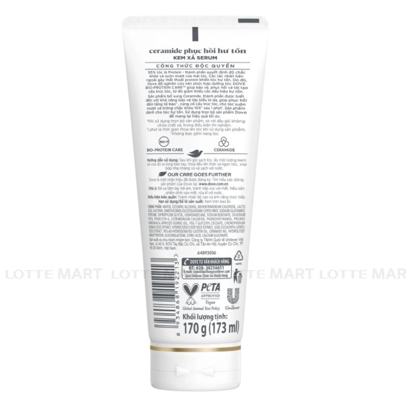 Kem Xả Serum Dove Ceramide Phục Hồi Hư Tổn Tuýp 170G