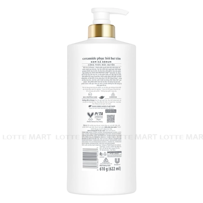 Kem Xả Serum Dove Ceramide Phục Hồi Hư Tổn Chai 610G