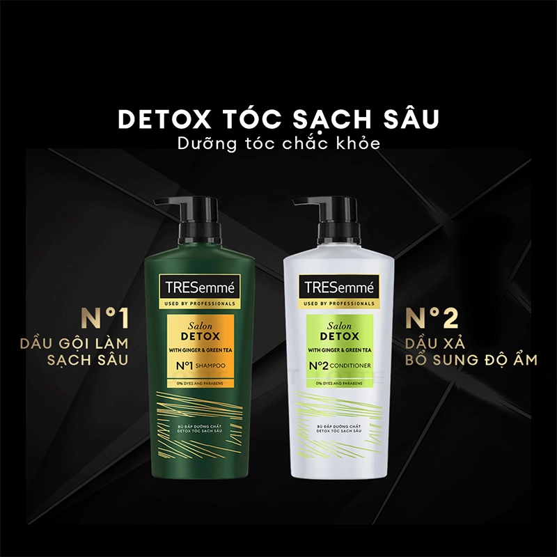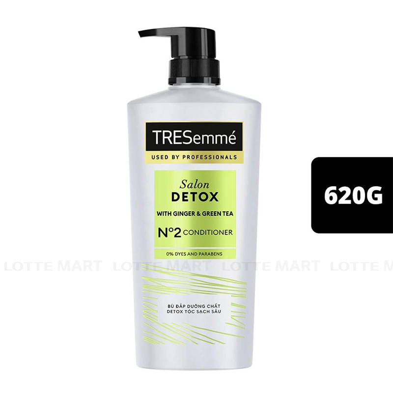 Dầu Xả Tresemme Salon Detox Gừng & Trà Xanh Sạch Sâu 620g dành cho tóc hư tổn, với công thức từ thương nhiên gồm gừng và trà xanh, giúp detox tóc và bù đắp dưỡng chất cần thiết, cho mái tóc bạn chắc khỏe chuẩn salon ngay tại nhà.